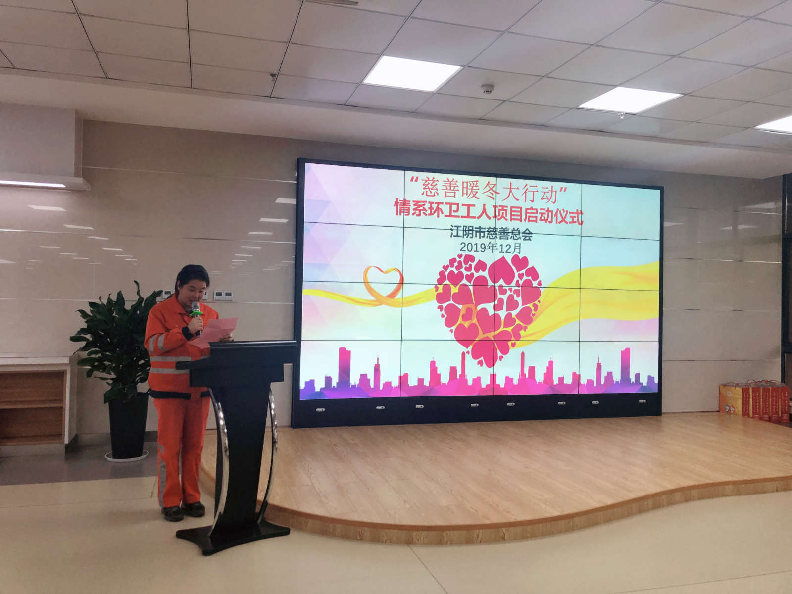 活动分为三个议程,首先,环卫工人代表吴春红发言,吴春红在发言中激动地说道:“很感谢市慈善总会对我们的关心,给我们雪中送炭,让我能倍感温暖,今后我会更加认真地做好自己的本职工作,维护好城市文明形象。”