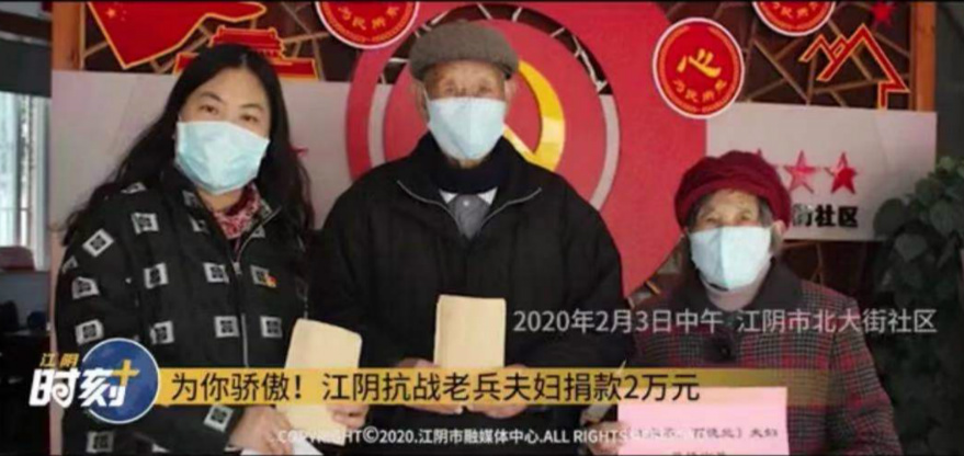 另有90多岁高龄的抗战老兵夫妇在疫情面前毅然拿出家私捐款2万元,助力抗击疫情。