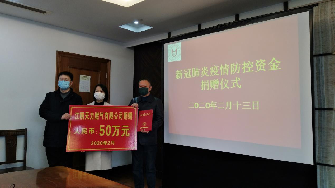 江阴天力燃气有限公司捐款50万元用于疫情防控工作。