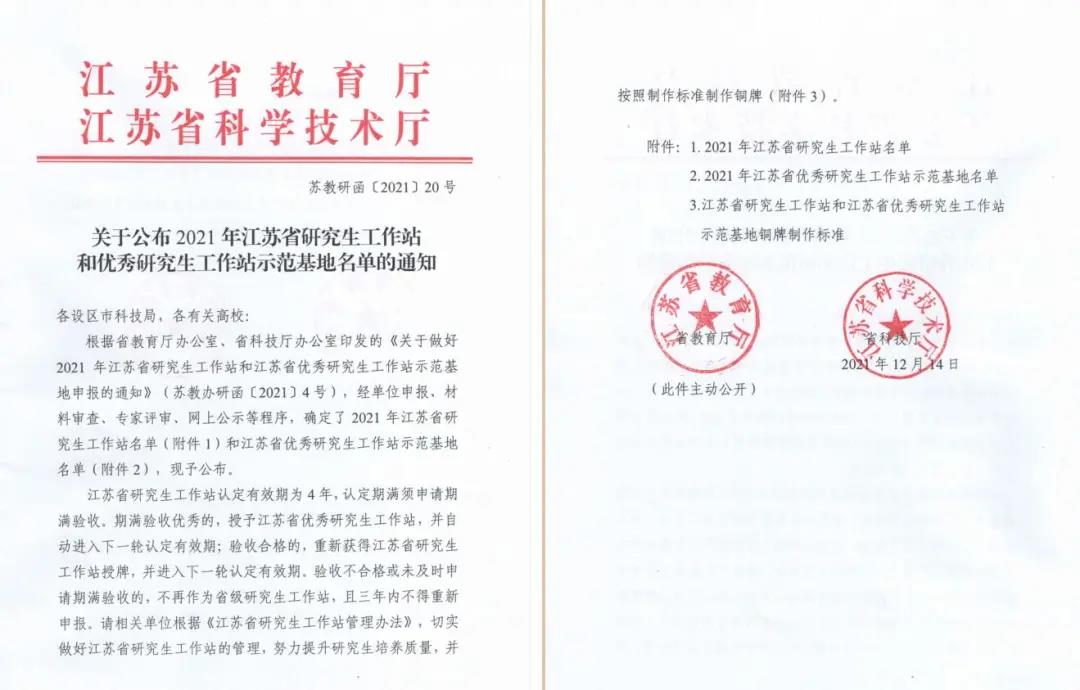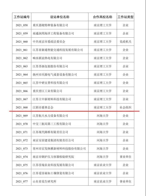 近日,江苏省教育厅、科技厅确定并公布了2021年江苏省研究生工作站名单,江阴市慈善总会作为全省唯一的社会组织获评“江苏省研究生工作站”。