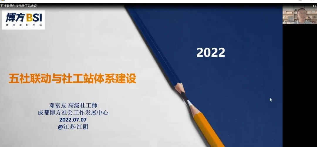 成都博方社会工作发展中心创始人兼理事长邓富友老师讲授了社工站的四级工作体系、社工站五有要素、五社联动和社工站的品牌打造等内容,让学员们了解了五社联动机制及其对社会工作服务的启示。