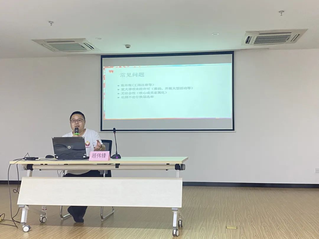 江阴市婚姻家庭指导中心主任陈晔蓉老师及江阴市青年点点爱心港会长、党支部书记顾伟锋老师分别就“幸福澄双对”项目及社会团体的构建与发展进行了详细介绍。