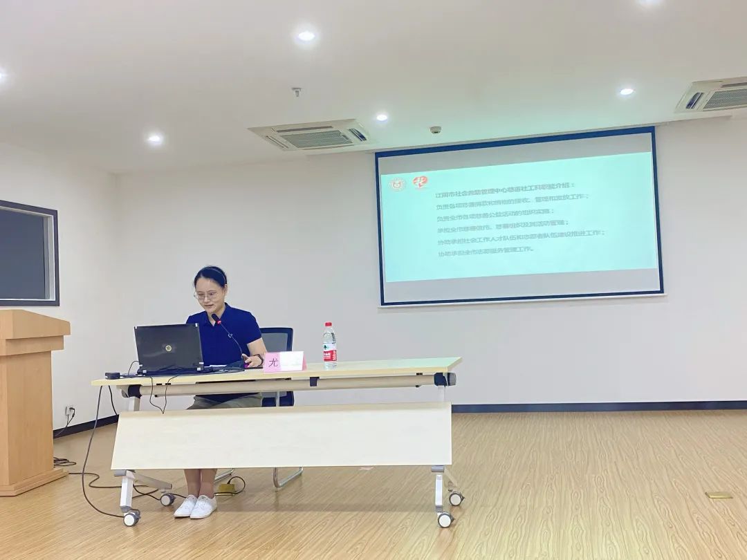 江阴市社会救助管理中心慈善社工科相关业务负责人给学员们介绍了乡镇社工站管理系统的实操流程以及慈善资金与救助、慈善文化与宣传、慈善活动与项目等相关内容。