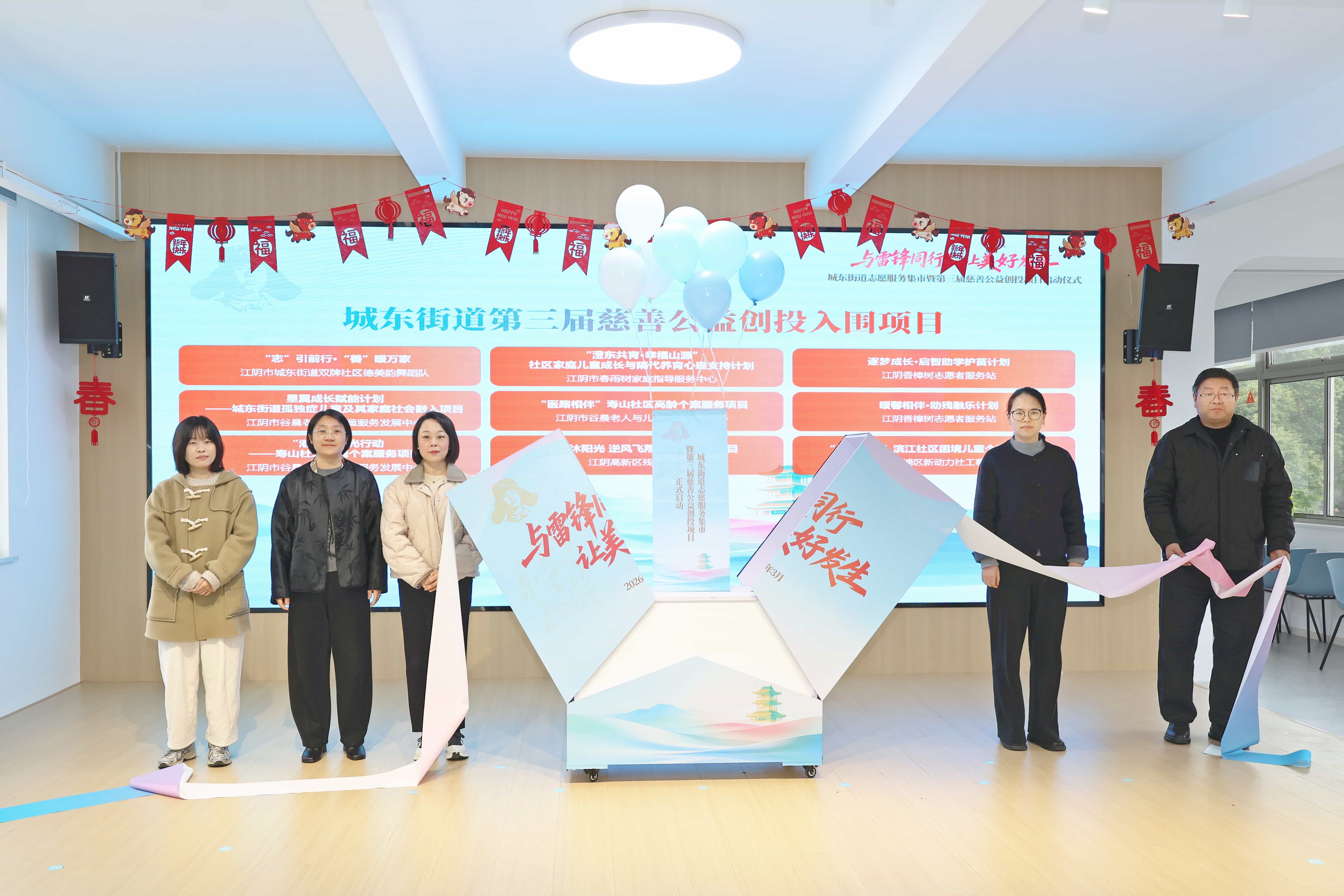春风送暖,慈善同行。3月5日下午,为深入传承和弘扬公益服务精神,凝聚社会慈善力量,江阴市城东街道志愿服务集市暨第三届慈善公益创投项目启动仪式在新时代文明实践所举行。市民政局副局长佘晓萍、市委社会工作部副部长汤中一、市新时代文明实践指导中心主任林一帆,街道党工委副书记常惠琴、办事处副主任陈栋辉、党工委委员任秋蕾等领导出席活动,与辖区优秀志愿者、社会工作者、居民代表等齐聚一堂,共赴一场温暖的公益慈善之约。