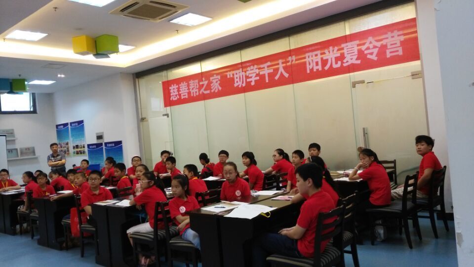 昨天上午,市慈善总会“慈善帮之家”活动室内一扫往日的清净,来自澄江街道的30余位小学生穿着统一的服装排排坐,参加由市慈善总会和澄江街道主办,江阴市青年点点爱心港承办的“助学千人”阳光夏令营活动正式开营。