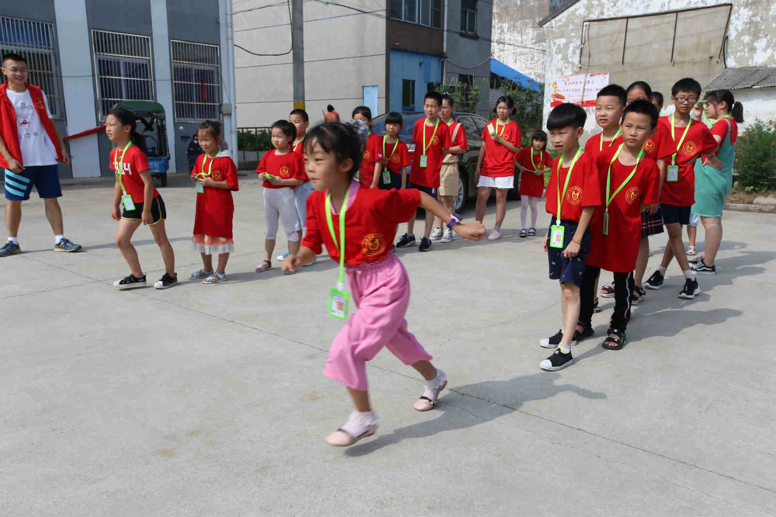 【比赛跑】再热的天气,也挡不住想要放飞自我的心!在老师和志愿者的带领下,两个小组的同学们玩起了破冰游戏——123,木头人。两队打成平手,看来都是运动健将呢。