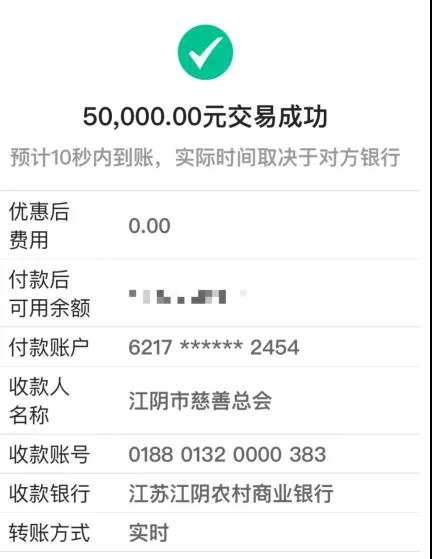 他们决定把攒了很久、也期待了很久的蜜月旅行资金,全额50000元整,统统捐给江阴市慈善总会。