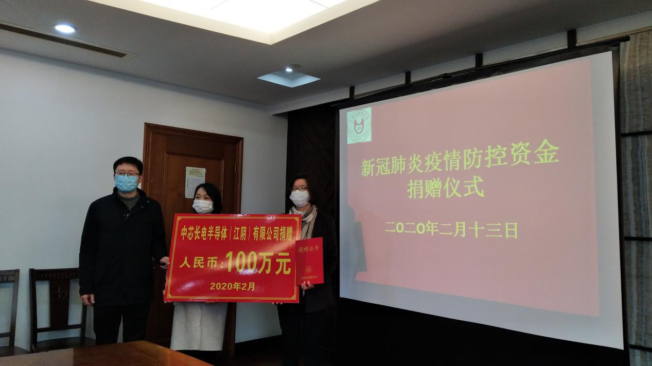 中芯长电半导体(江阴)有限公司捐款100万元用于疫情防控工作。