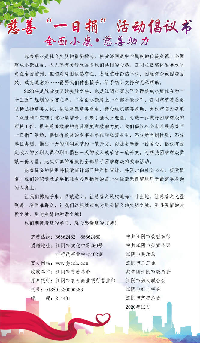 2020年“全面小康·慈善助力”慈善 “一日捐”活动实施方案