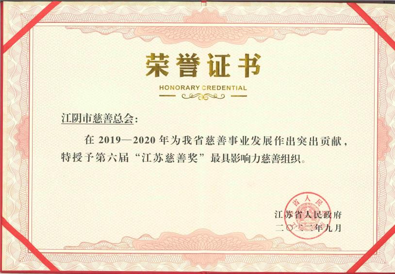 喜报!江阴市慈善总会荣获“江苏慈善奖”