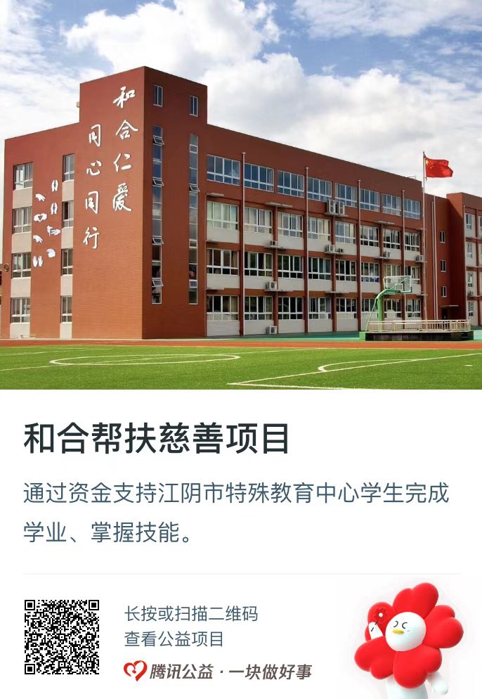 该项目是为加强对江阴市特殊教育中心校在校学生的保障而设立的慈善项目,对经济困难、有潜能的学生进行资助,旨在动员社会各界力量,通过资金支持的方式,保障学生学业的完成和技能的学习,为特教学生成才建立起长效的保障机制。网络募捐目标为2万元。