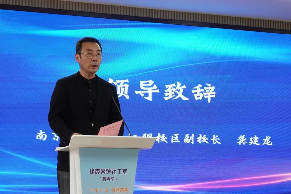 活动现场,徐霞客镇党委副书记俞健对参与本次活动的各位领导、专家、学者等表示热烈的欢迎。希望未来能够与南京理工大学共同探索合作新方式、新方法,推进产学研的深度融合,以社工站(慈善站)为平台,深化社会工作服务实践,创新社会管理方式,提升社会治理水平,在引领社会向上向善中发挥积极作用。龚建龙重点介绍了南京理工大学社会工作专业的发展历程、师资力量、教学水平以及目前取得的显著成绩。龚建龙表示,江阴校区始终致力于推动社会与高校教育的深度融合,推动双方资源共享、互惠互利、共赢发展,并且希望双方能够以此次协同活动为基础,建立长效合作机制,进一步探索在产教融合、产学研等方面的合作路径,打造校地融合发展的新典范。