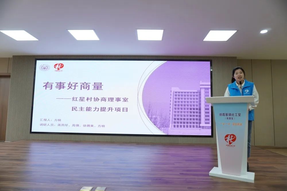 5月10日下午,我市首批村社工室(慈善室)“一室一品”项目路演在徐霞客镇顺利举办。该项目是由“协同:乡镇(街道)社会工作站建设助力计划”支持,江阴市民政局、江阴市慈善总会指导,徐霞客镇民政科与南京理工大学公共事务学院共同主办的社会工作专业服务项目,也是我市社工站室(慈善站室)建设重点推进的试点实施项目。项目的开展是将社会工作专业理论指导与基层实践经验、资源相结合,目的是推动社工室(慈善室)“一室一品”精品项目加速落地见效,着力为群众解决急难愁盼问题,满足群众多样化多层次的社会工作服务需求。