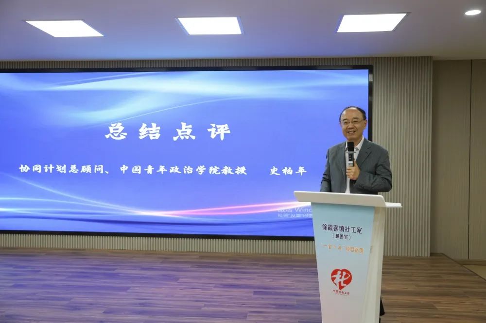 协同计划总顾问、中国青年政治学院教授史柏年强调,在乡村振兴背景下,本次的村校合作项目路演具有非常重要的意义,在此次与各村合作打造项目的过程中,需要注意将专业话语体系转变成本土化的可理解的体系,以顺利推进项目的落地开展,江阴市社工站(慈善站)与高校的合作模式是值得借鉴的,期待江阴总结出规范化、可借鉴的成功经验并进行全国的推广与传播。