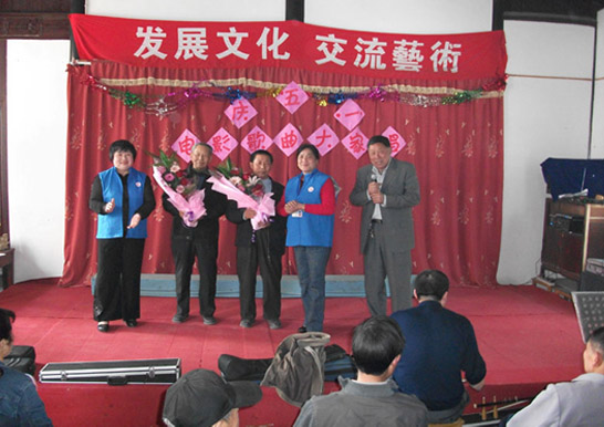 活动有二个议程:首先,义工队员为江苏省劳动模范、长泾镇运输社退休职工苗红宝老人和江阴市首届“十佳”新闻人物沈福才两位特邀嘉宾献上了鲜花,感谢他们为长泾镇作出的贡献。义工队员叶金莲为两位嘉宾送出一曲《好人一生平安》,祝他们节日快乐,身体健康。此时,全场响起经久不息的掌声,把活动推向了高潮。