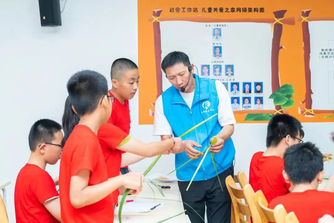 为了锻炼小营员们的动手能力,提高想象力和创造力,夏令营提供了咕卡制作、乐高拼图、美术油画、桃花冰箱贴等课程。同时,还特别邀请了棕编非遗传承人前来开展棕编教学,老师的作品让小营员们感受到了传统技艺的魅力。现场体验环节,在孩子们的巧手翻飞间,一条条“小鱼”跃然而生。