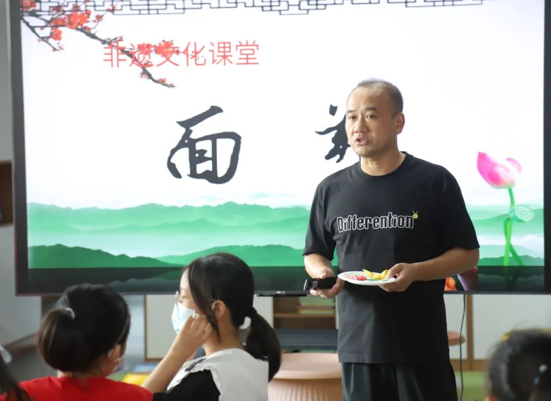 非遗面塑大师卢飞浦向孩子们介绍了面塑的起源、传承、制作材料以及制作技法,随后大家以“莲莲有鱼”为主题进行了一场别开生面地面塑制作,卢老师一边灵巧地制作着面塑,一边为大家细致讲解面塑制作的要点。最后,在志愿者和老师的帮助下,孩子们都完成了自己的作品,并且进行展示。