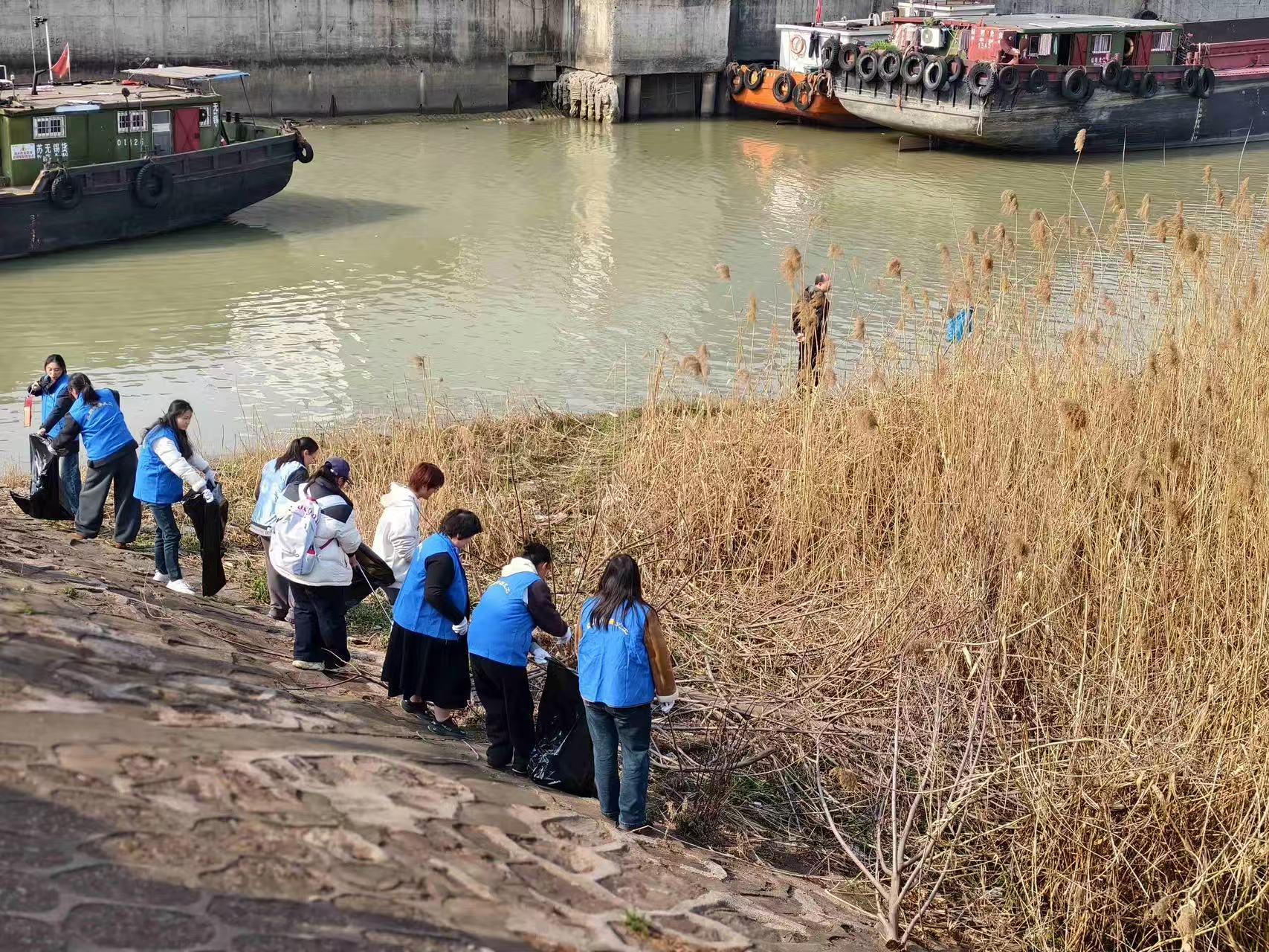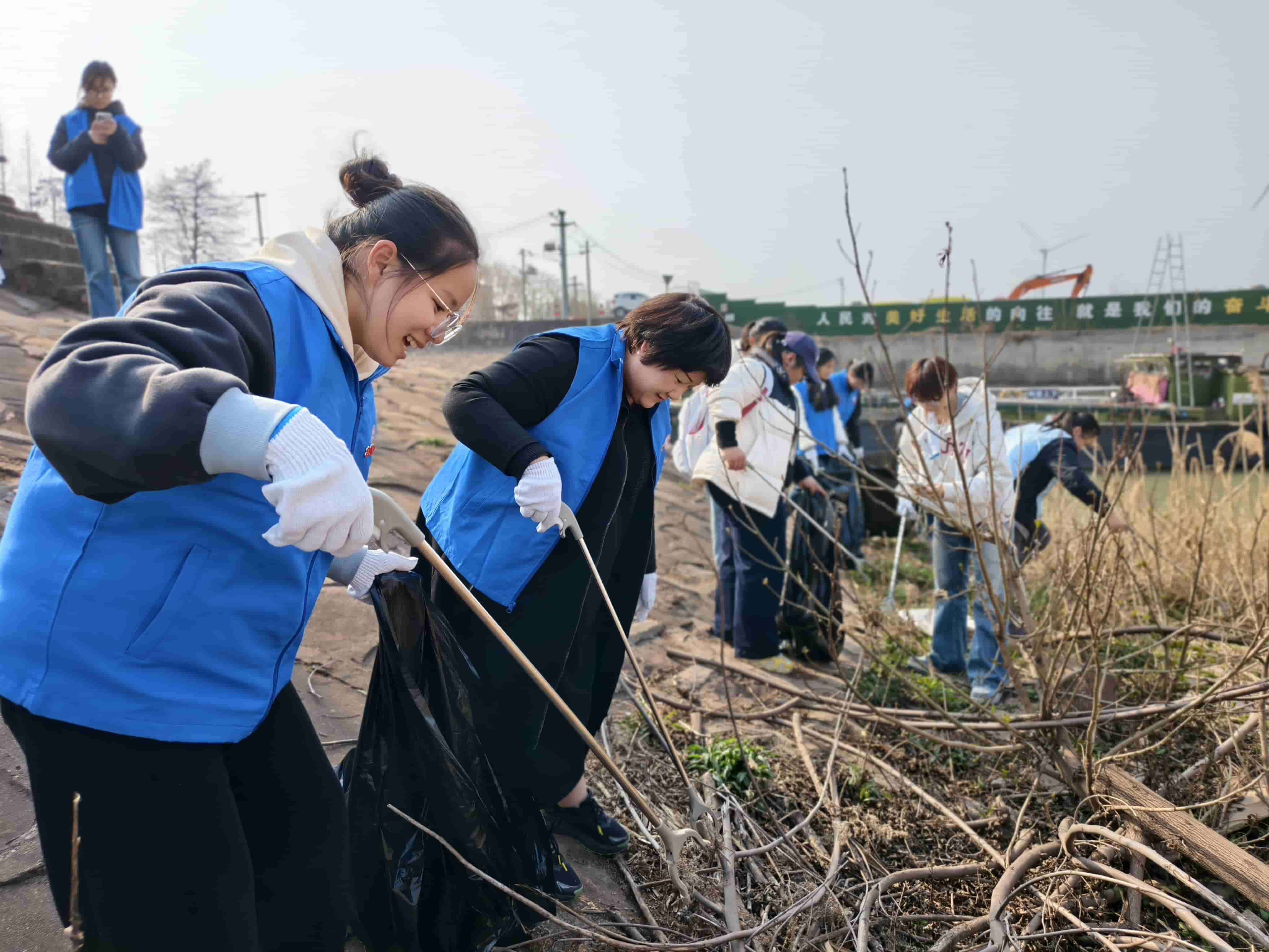 下午,全体社工转场至滨江村渡江战役登陆点,投身“植绿护江”生态公益实践。在“益”起种希望环节,社工们分组协作,有条不紊地完成了树苗栽种,用实际行动为长江沿岸增添新绿。随后,各小组前往指定江滩区域,开展净滩守护行动,细致捡拾各类垃圾杂物,助力维护江滩生态环境。