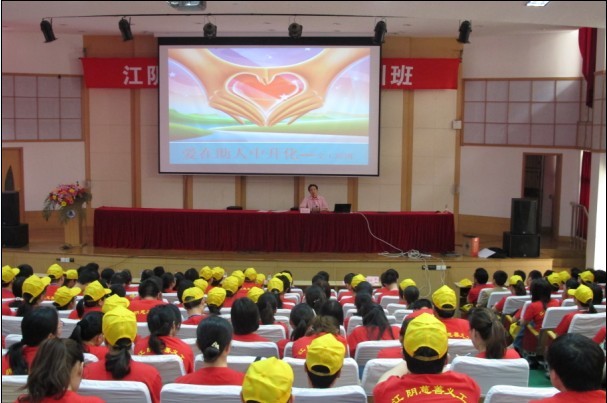 5月14日上午,江阴市慈善总会在华士高中报告厅举办了首场教育义工专项培训,来自华士的400名教师参加了培训并加入到慈善义工的行列,为今年的义工系列培训拉开了序幕,总会还将到其他各义工站进行巡回培训,不断优化义工队伍建设。