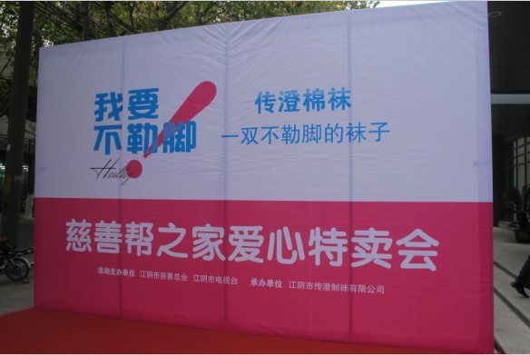 此次活动,江阴市传澄制袜有限公司向市慈善总会捐赠了3000双爱心袜,价值15000元,并将原价18元的不勒脚袜挂出了5元一双的爱心价,当天购袜的市民还能免费获赠传澄袜子博物馆门票,热心市民争相购买。活动现场20名慈善义工在维持秩序的同时,也耐心得为参加活动的市民们解答疑难。