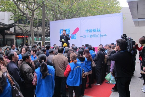 11月21日上午,江阴市慈善总会、江阴电视台、江阴传澄制袜有限公司在南街200号慈善帮之家共同举办了“我要不勒脚——慈善帮之家爱心特卖会”活动。
