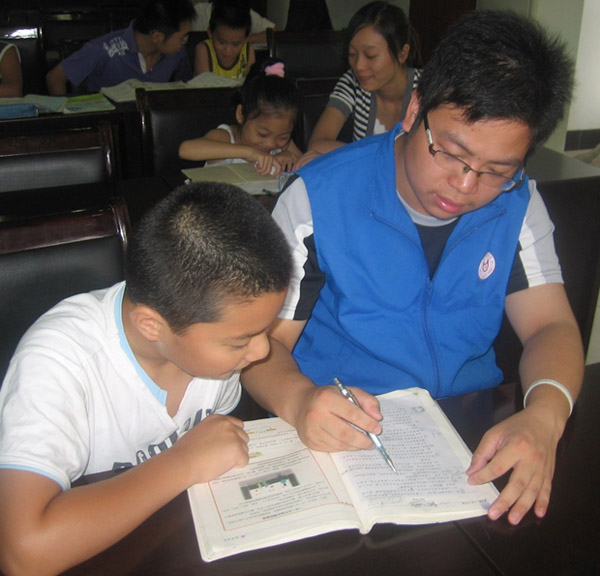 “我要教授孩子知识,传播信心和希望。”来自南京理工大学大学生李翔说,这次义务家教他主要是帮助初三的学生辅导高一课程,并向他们传授自己的学习心得、“高中心得”,希望用自己的学习经验来帮助孩子们掌握正确的学习方法,从根本上提高成绩。辅导班内传出的温馨话语和偶尔爽朗的笑声给这炎炎夏日带来了丝丝惬意,让我们充分感受到当代大学生的风采。