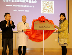 随后,江阴市民政局副局长、慈善总会副秘书长蒋玉军、无锡明慈心血管病医院院长院长杨光、无锡明心心脏病救助基金会理事长曹亚共同为 “明心助力”江阴市心脏病患者慈善救助项目揭牌,至此,“明心助力”慈善救助项目正式启动。